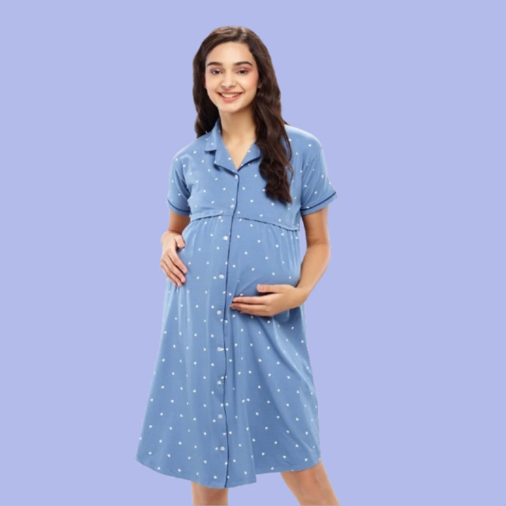 A feeding nighty is specially designed for maximum comfort during nighttime feeding. It comes with front openings, zippers, or button panels for easy and quick access.