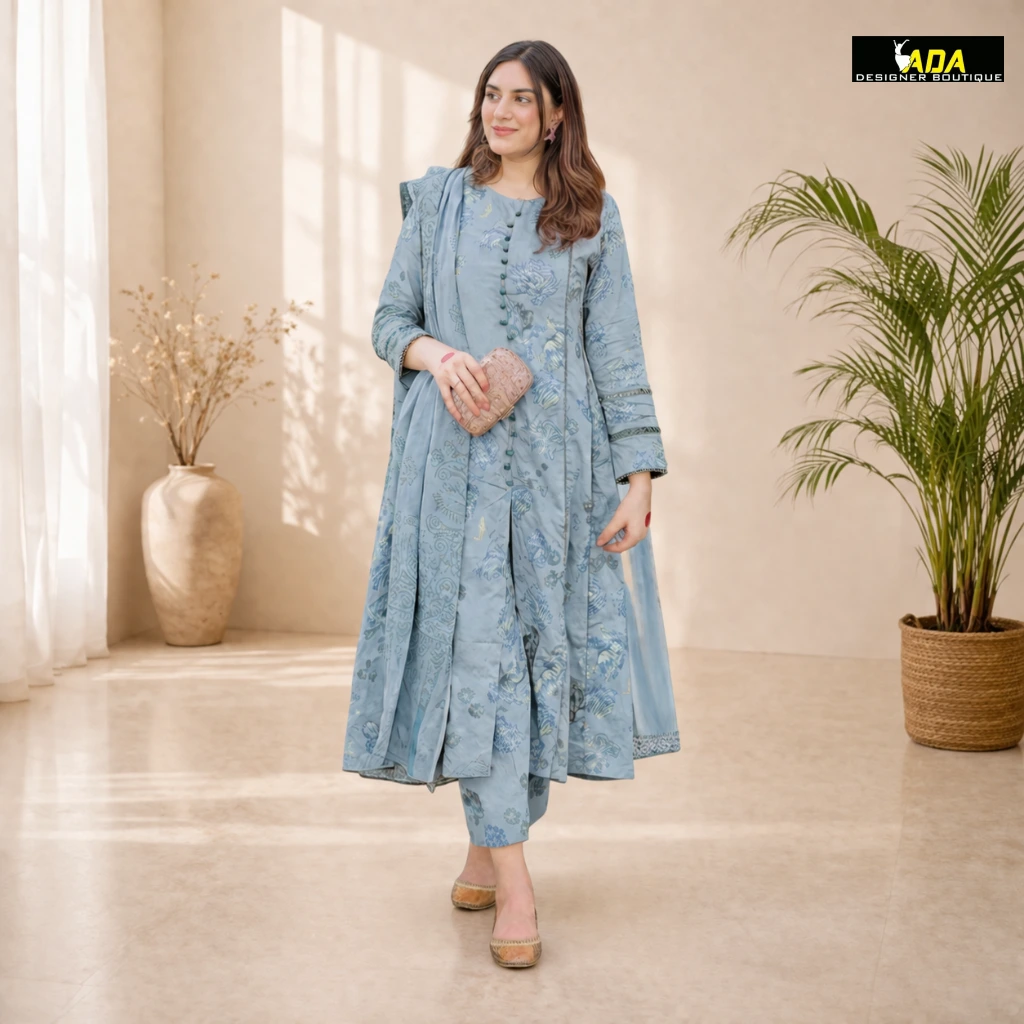 At Ada Designer Boutique, we offer custom Farshi Salwar Suit stitching, tailored perfectly according to your height and fabric choiceensuring your outfit looks rich, elegant, and remains comfortable to wear.