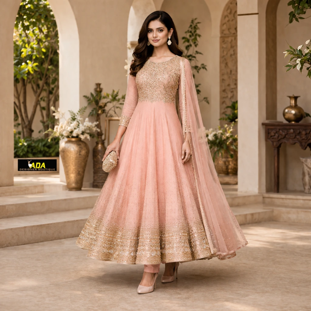 At Ada Designer Boutique, we specialize in Anarkali Salwar Suit stitching, offering custom Anarkali suits, designer Anarkali dresses, and perfect fitting Anarkali suits tailored to your measurements. Our focus on detailed stitching and premium finishing ensures you stand out at every event.