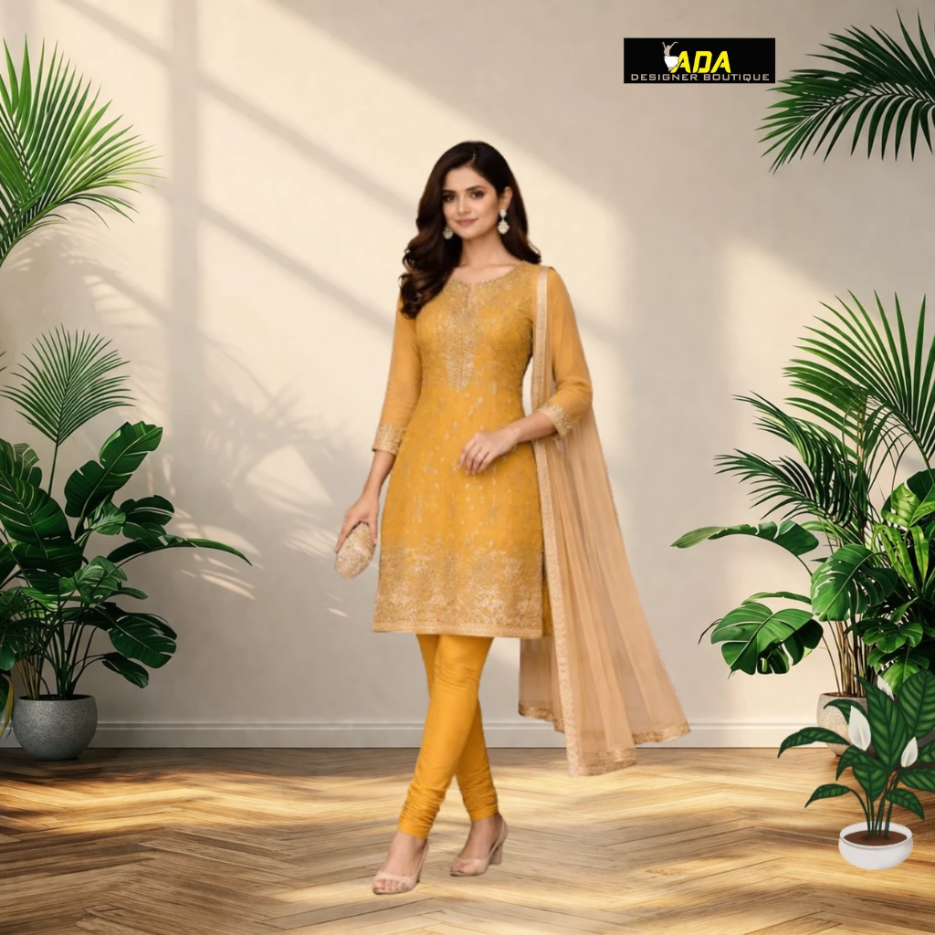 At Ada Designer Boutique, we offer Churidar Salwar Suit stitching with perfect fitting, fine detailing, and all-day comfort, ensuring you achieve a traditional yet smart appearance.