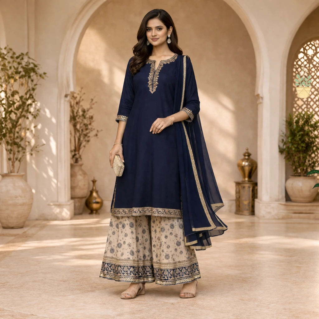 Palazzo Salwar Suit is highly preferred by women who want both comfort and style in their outfits. With its wide-leg palazzo pants, this suit offers a relaxed, breathable, and contemporary look, making it a perfect choice for modern fashion lovers.