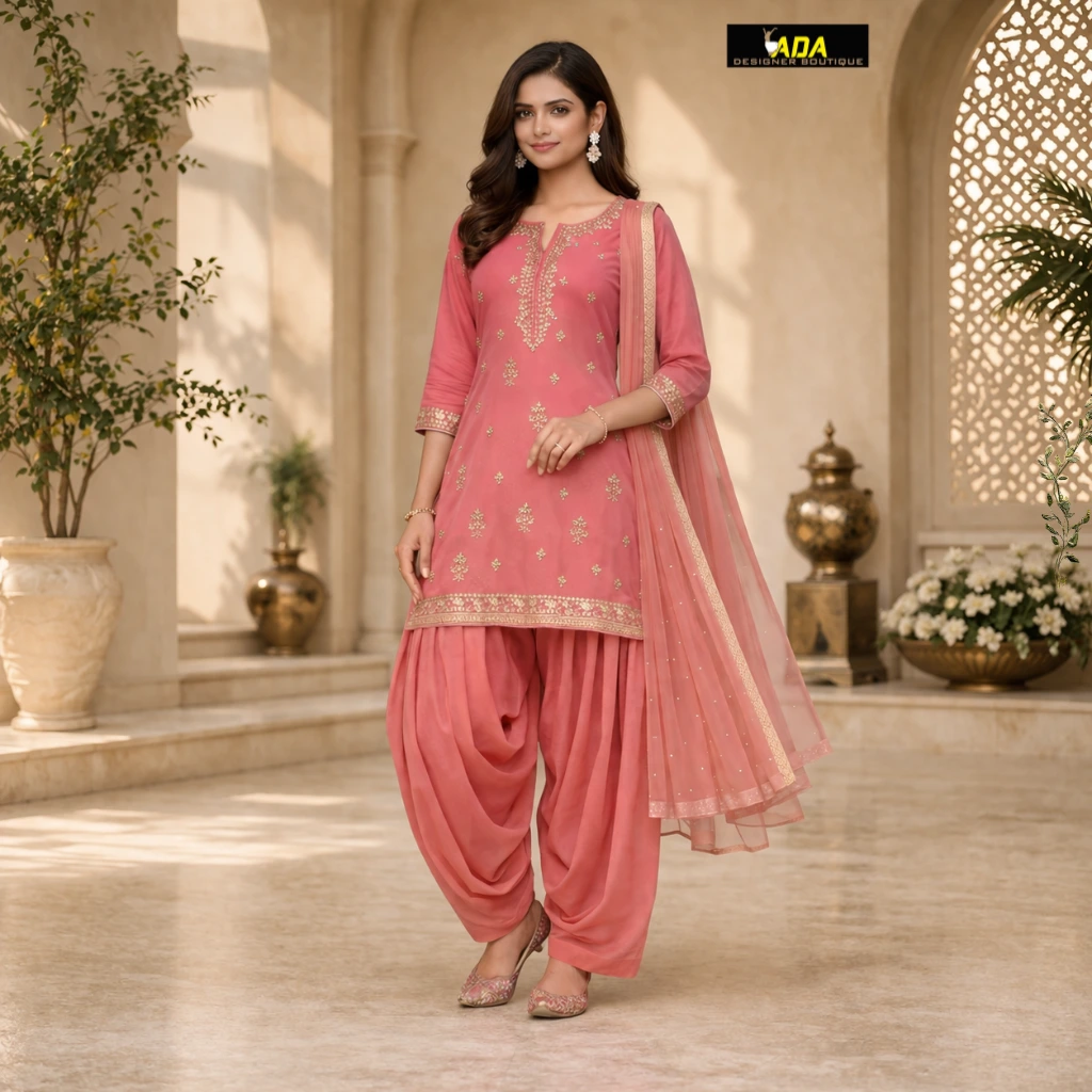 At Ada Designer Boutique, we offer Patiala Salwar Suit stitching with perfectly balanced pleats and precise fitting, ensuring your outfit looks both stylish and comfortable.