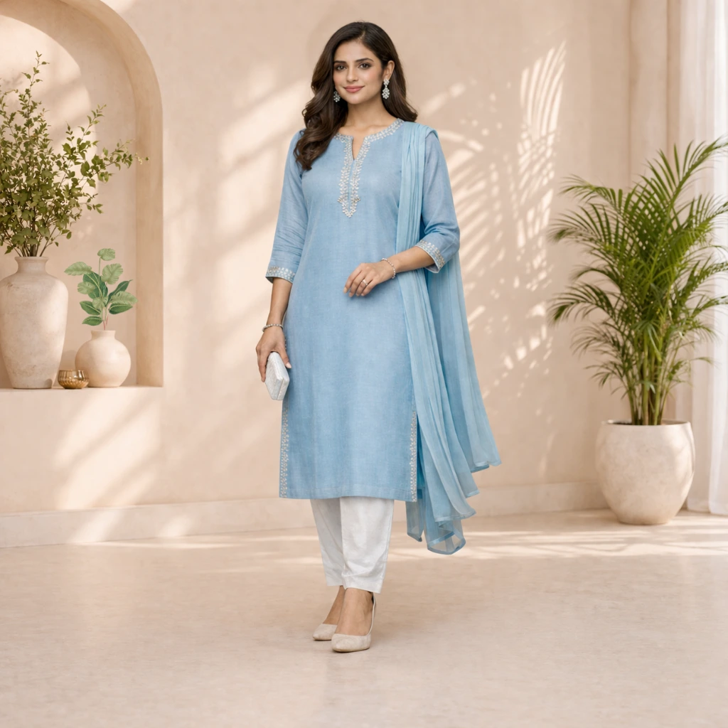 An A-Line suit is a perfect choice for festive wear, semi-formal occasions, office wear, and casual outings, offering a blend of tradition and modern elegance.