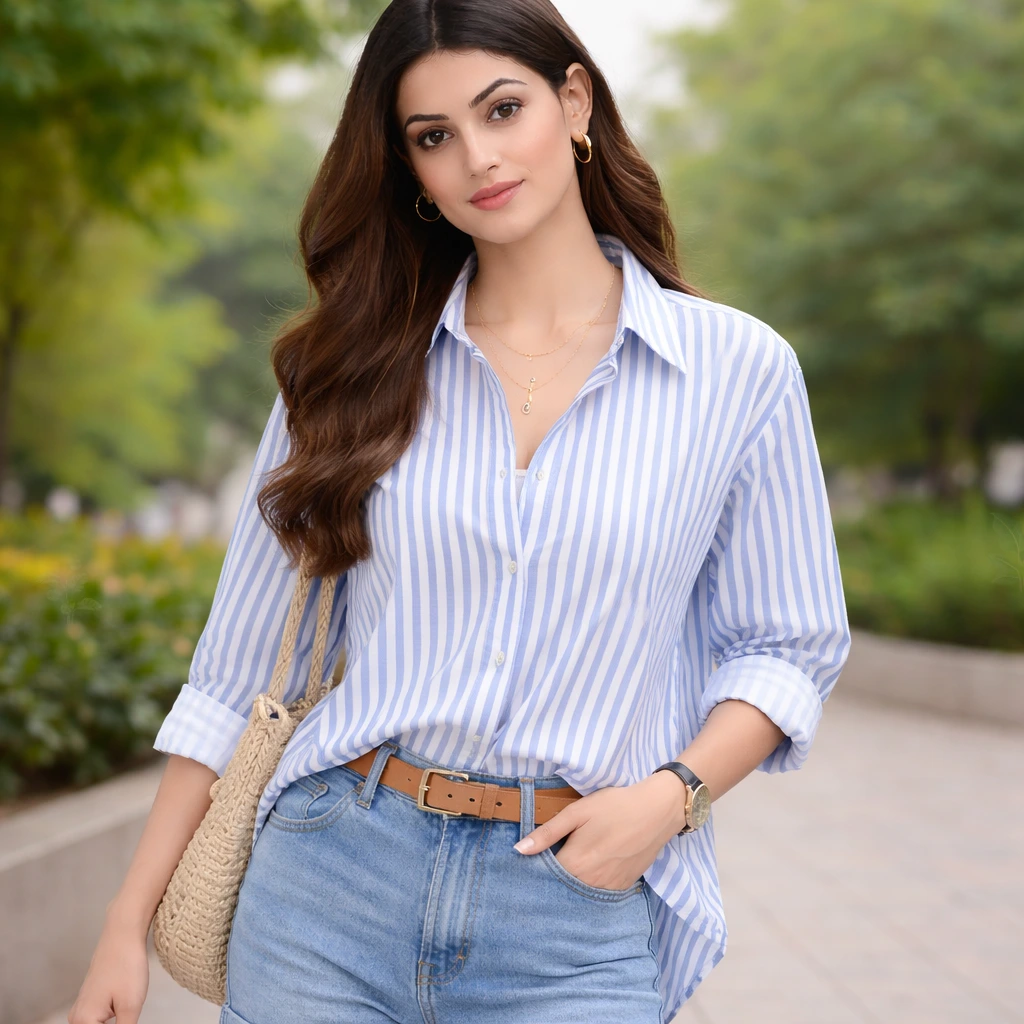 A striped shirt refers to a fabric that has lines running vertically, horizontally, or sometimes diagonally. Proper alignment of the fabric lines during stitching is crucial so that the stripes match perfectly. This alignment gives the shirt a clean, neat, and premium look, and the finishing of the striped shirt after stitching appears more attractive. If you are searching  for striped shirt near me, Ada Designer Boutique offers customized stitching  with the latest designs, premium fabrics, and perfect fitting.